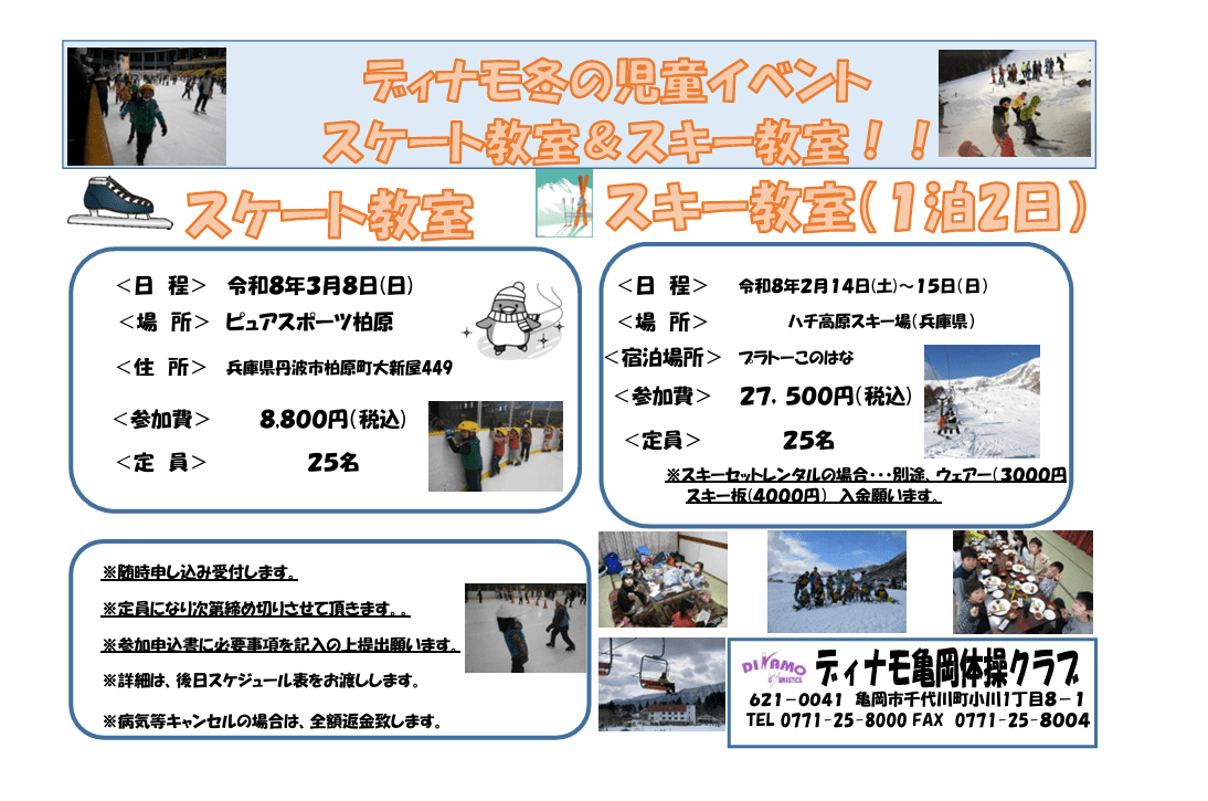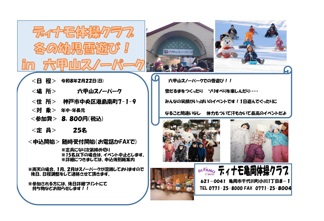 2025.12.03 2026年幼児・児童イベントの受付を開始しました! 授業の際に手紙を配布しております。予約は受付で直接申込みいただくかお電話にて受付致します! 定員は先着順になっているので参加希望の方はお早めに受付をお願い致します。